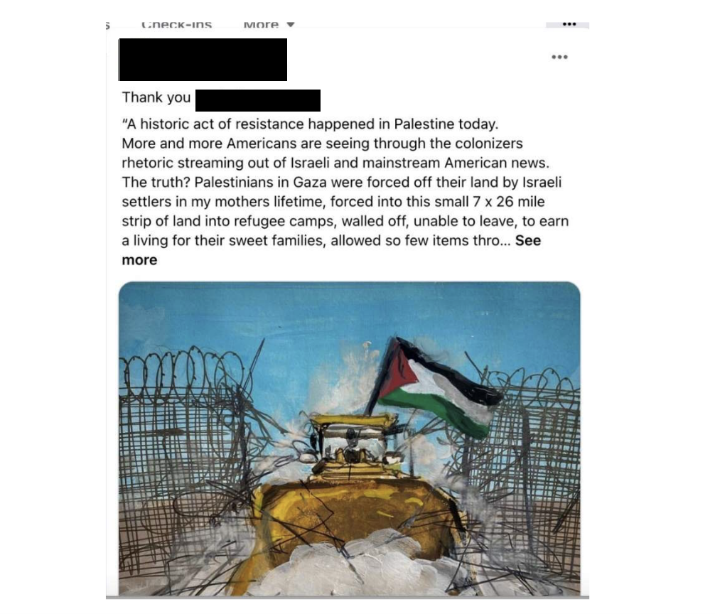 Another teacher reportedly went on a number of anti-Israel tirades and regularly expressed “antisemitic stereotypes.” She required students to write an assignment on Israel being considered an “apartheid” state and was hostile toward dissenting opinions.