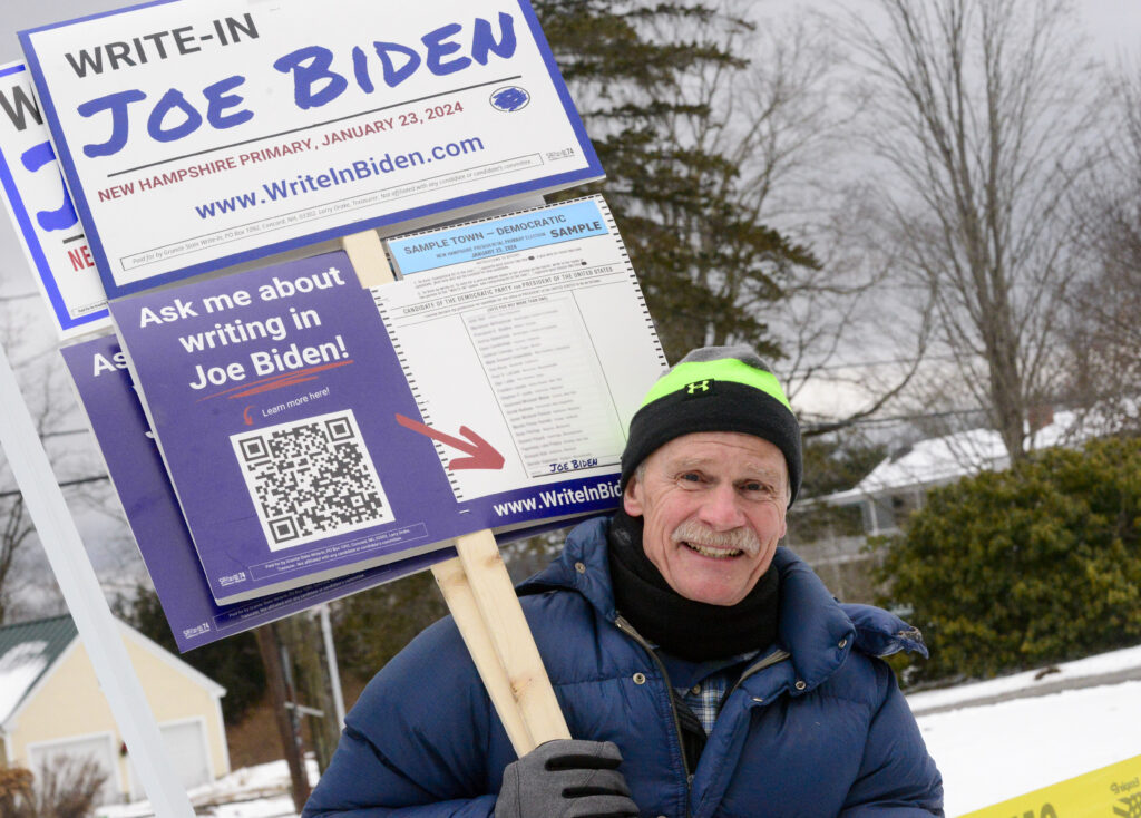 Because of a dispute between the Democratic National Committee and New Hampshire, Biden won’t appear on the ballot and he hasn’t campaigned in the state, while Phillips has staked his long-shot White House bid on the Granite State.