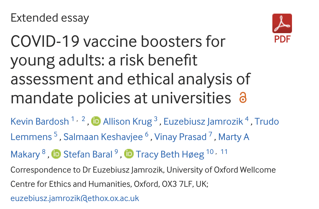 In fact, Fraiman and colleagues published another study showing that in order to prevent one COVID‑19 hospitalization over a 6‑month period among young adults (18-29), over 30,000 of them would need to receive a third (booster) mRNA dose.